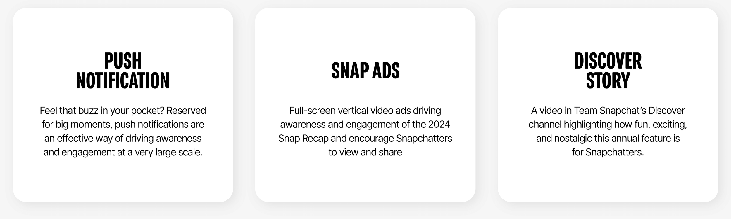 The 2024 Snap Recap campaign rolled out across a variety of channels including: